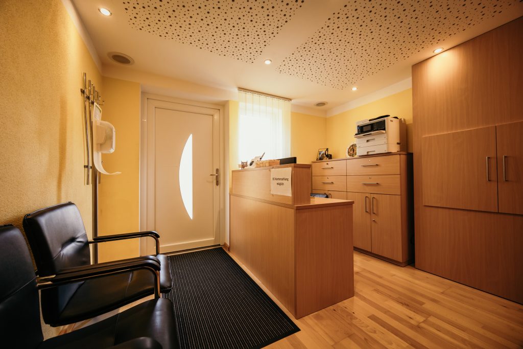 Helle, einladende Praxisräume in warmen Gelbtönen